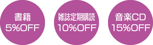 同じ書籍を10冊以上まとめて買うと10%割引になります。教科書や参考書など、友達と一緒に共同購入するとお得です。